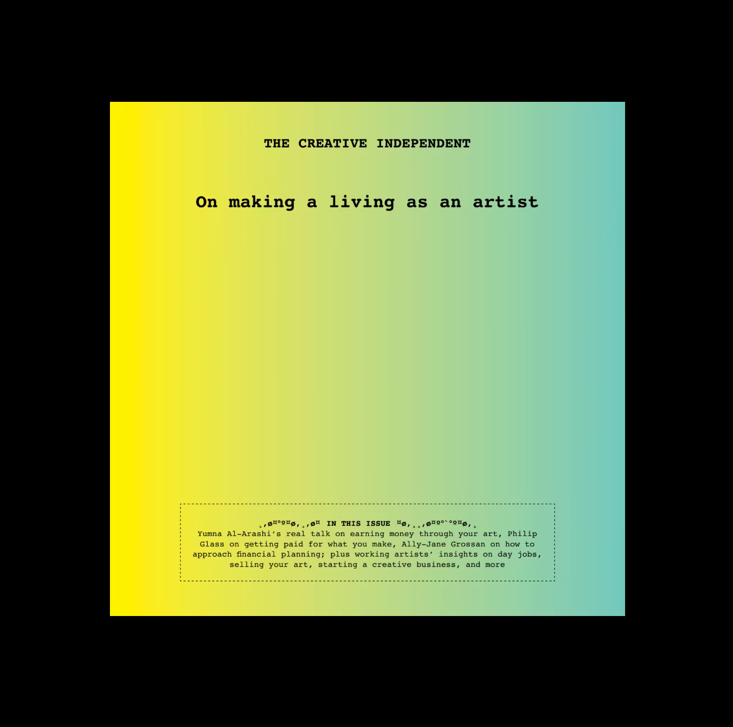THE CREATIVE INDEPENDENT, “ON MAKING A LIVING AS AN ARTIST” (DIGITAL EDITION) (link) + “ON DEALING WITH CREATIVE ANXIETY” (DIGITAL EDITION) (link)